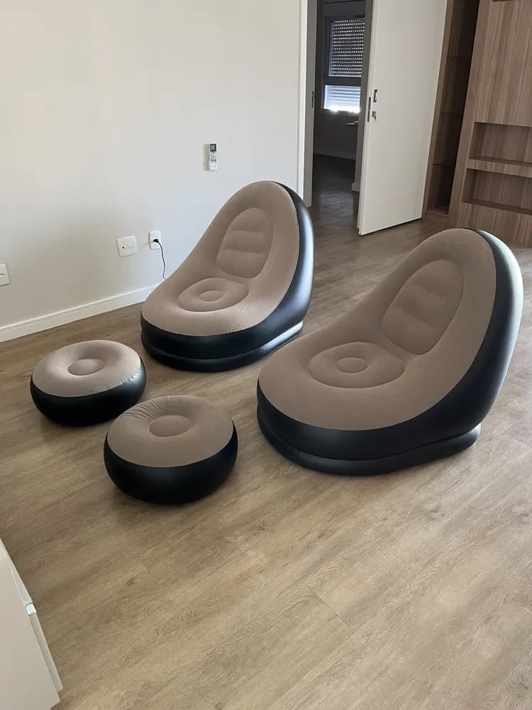 Este combo de Poltrona Inflável + Puff foi pensado para ti. Para o homem que trabalha, resolve, decide — e que, no fim do dia, quer um lugar que realmente o receba.