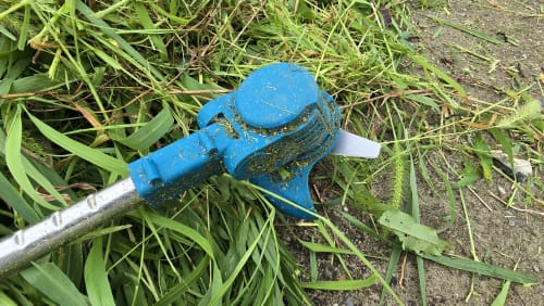 Lâminas afiadas que cortam até relva densa com facilidade.