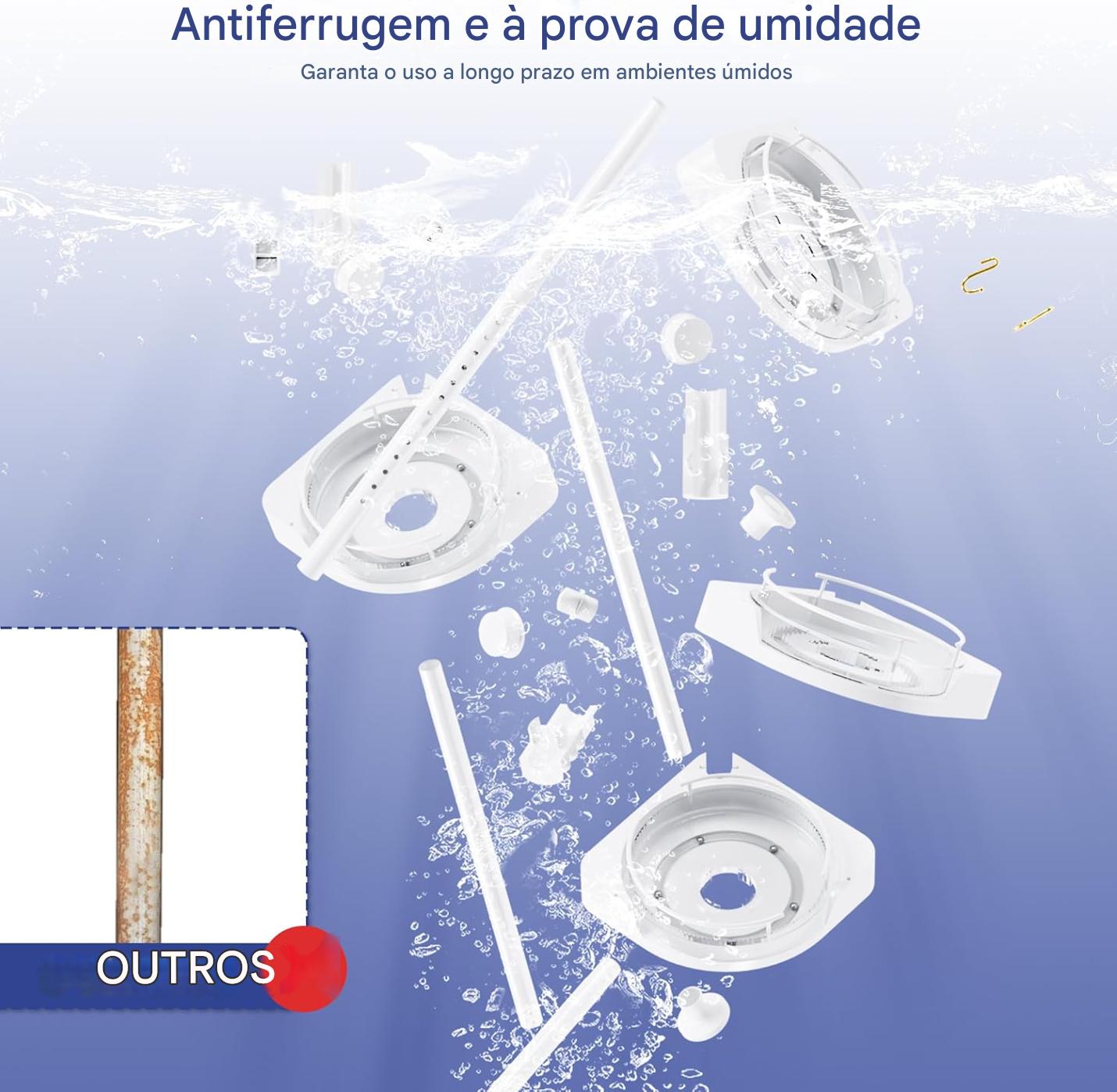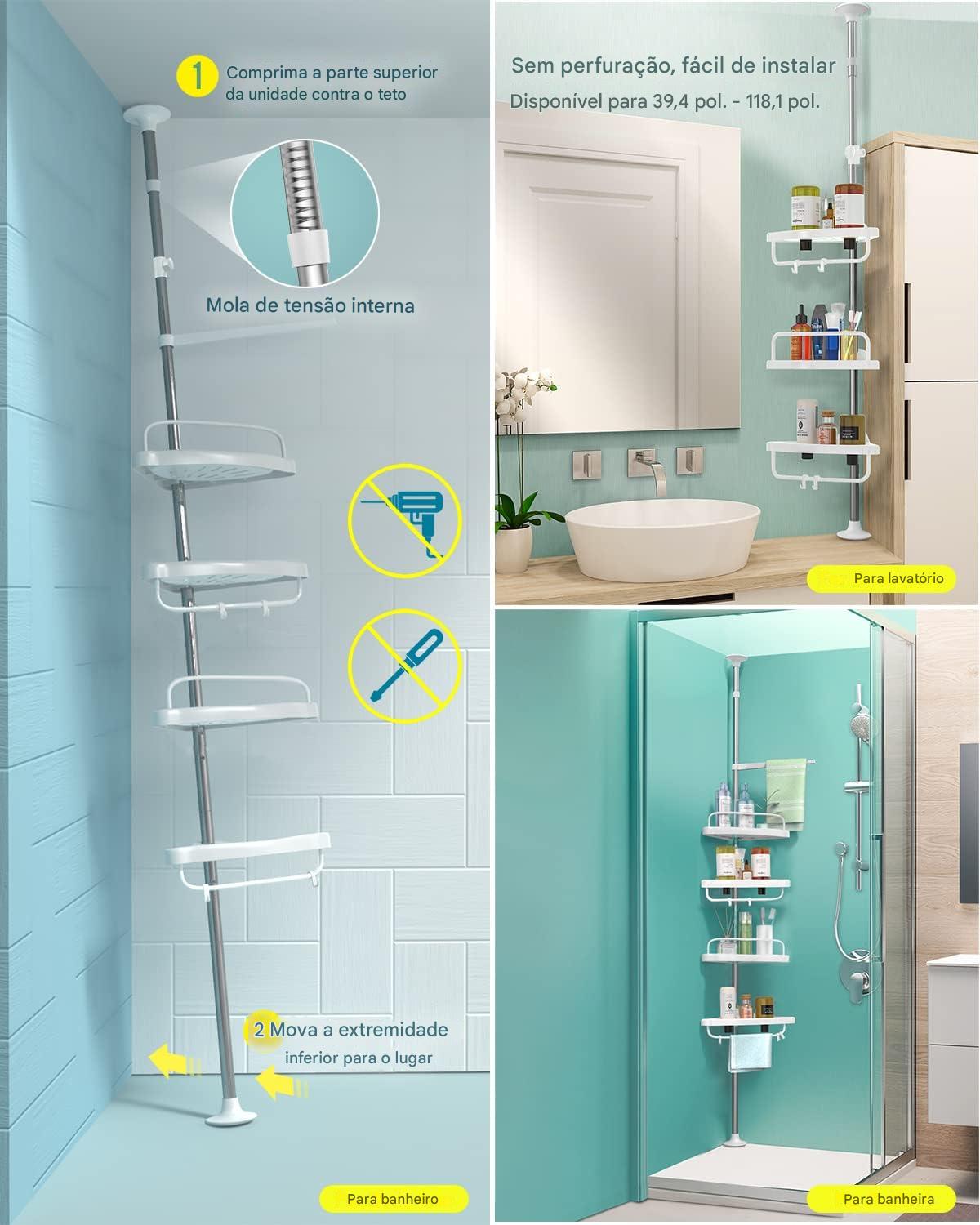 ★★★★★"Tenho casa de banho pequena, mas agora parece até maior. O suporte aproveita o espaço para cima e cabe tudo. Até minha esposa ficou impressionada."